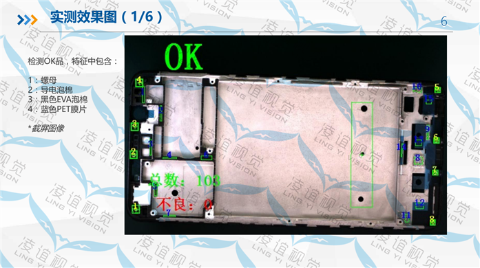 手機殼輔料檢測設備采用先進的視覺影像識別算法和架構,設備放置在流水線上實時在線檢測,精度高,識別效率高,帶聲光報警及自動剔除。可以識別手機殼件上的輔料漏裝,可識別黑色殼體上黑色泡棉的有無、零部件漏裝,倒裝,錯裝,堵孔等加工缺陷。能有效提高出貨品質及減少客訴。應用于手機殼體加工、結構組件、CNC加工、手機殼注塑、手機整機加工、電子產品加工行業(yè)等。